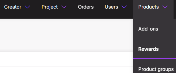 Before your project goes live, you have to prepare rewards for backers. To add products, go to the project you want to manage, then click "Products" at the top and choose "Rewards".