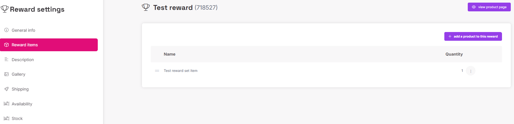 Since rewards on the platform are understood as sets, a reward must consist of at least 1 set item, and you cannot add any sets to a reward set. You can also add options to your reward set items and add-ons (such as color, size, language, etc.).