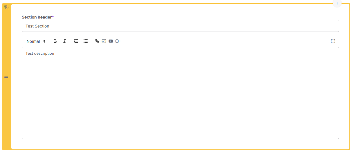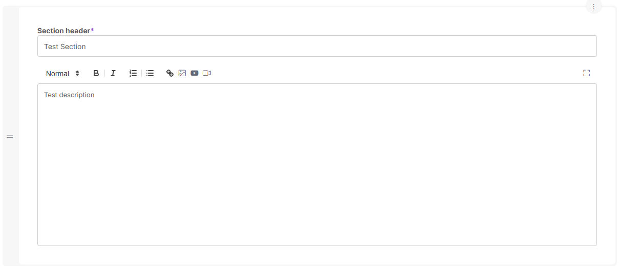 You can name the section however you want, and the section header will be displayed on the navigation list. You can also change its position by clicking the three-dot button on the right: