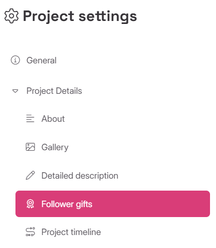 To enable a gift, go to "Project settings" -> "Project details" -> "Follower gifts":