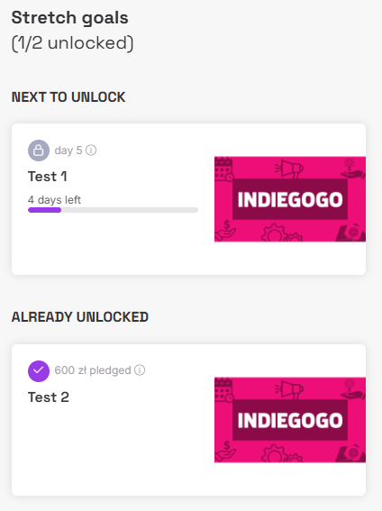 Note: Time-based stretch goals that you set to launch, for example, on the 2nd/5th day of the campaign, are published when the campaign starts.