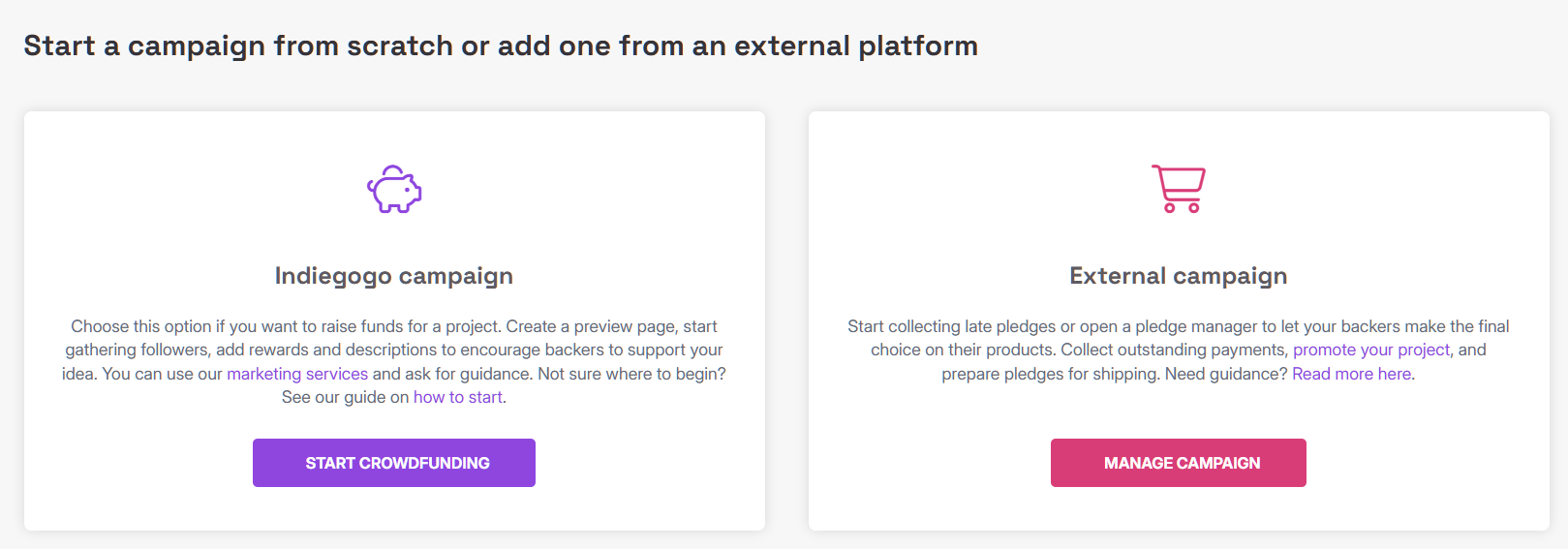 Thank you for choosing Indiegogo as the pledge manager for your project. If this is your first project on Indiegogo, please continue reading.