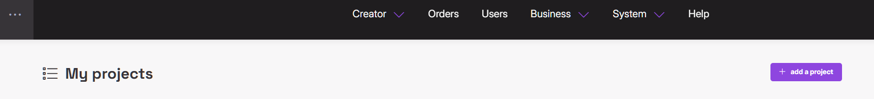 To start a project, go to your admin panel, click Creator->My projects at the top and then click "+Add a project" in the upper right: