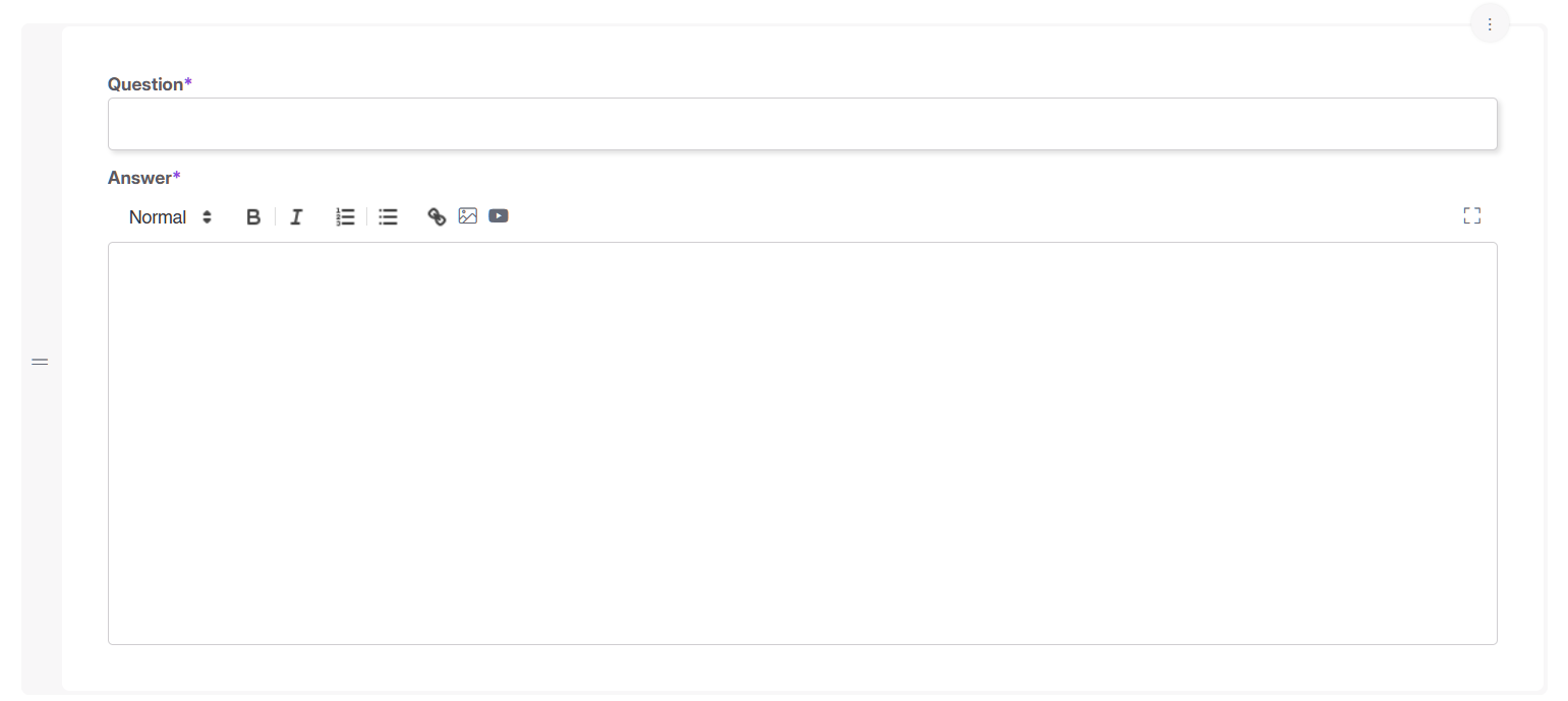 To add a FAQ section to your project, click the tool button in the top right corner and choose the project you want to manage. Go to "Project" and choose "Communication" from the list. On the left, you'll see a menu with communication options. Choose "FAQ" and click "+add question". You’ll see the following editor: