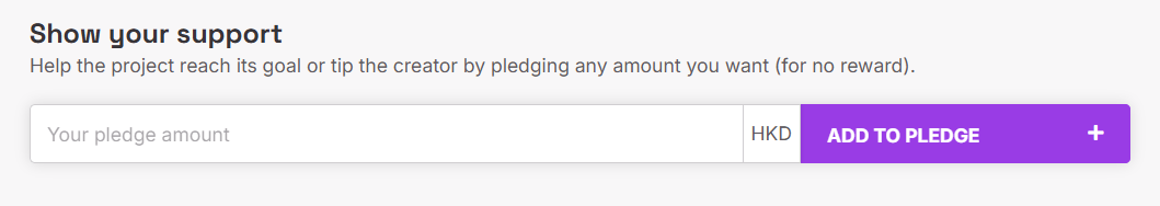 If you want to pledge to a project, choose the project you want to contribute to and open its campaign page. You'll see info about when the campaign ends, how much money it has collected so far, and how many backers contributed. To support it, click "Back this project". You'll be transferred to available rewards and add-ons. Choose the items you want to purchase and add them to your cart. You can also leave a tip for creators for no reward: