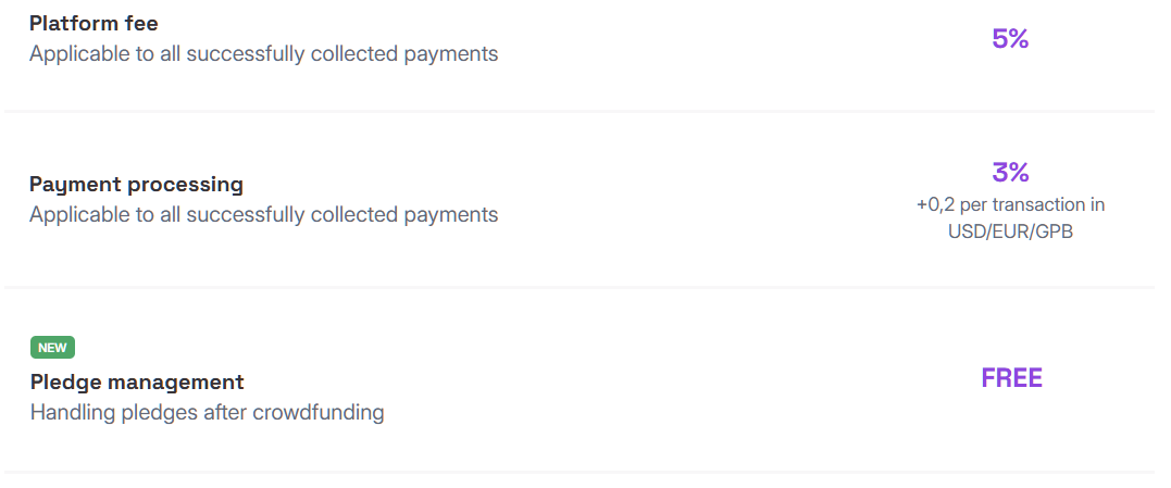 Platform fee: Indiegogo charges 5% of the collected amount.
