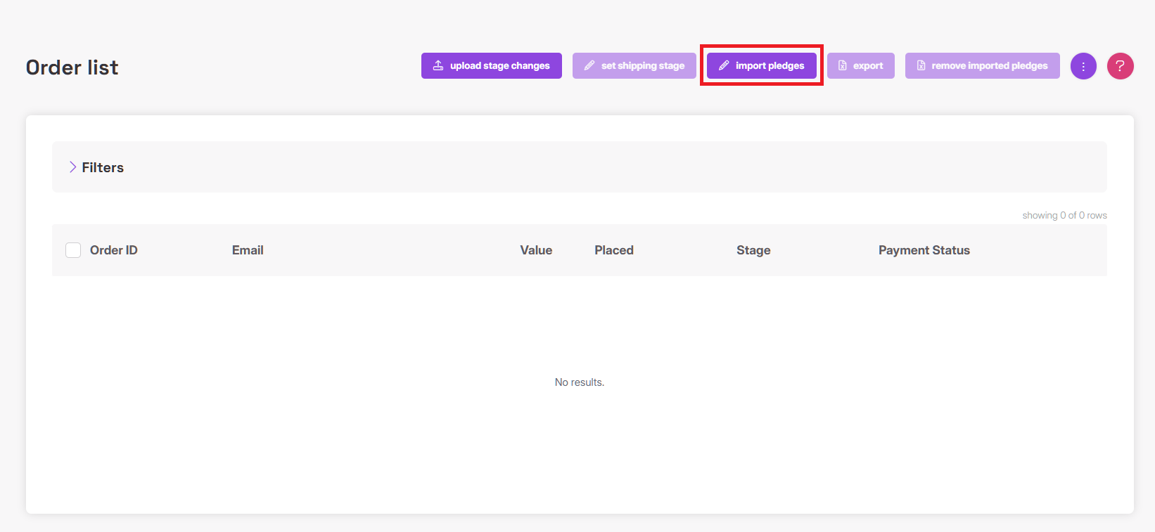 Once you have imported pledges, you can remove them in bulk if you wish to redo the process, as long as they have not been edited in the system and the project has not yet launched: