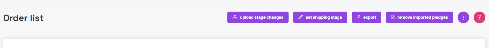 As a creator, you can change the order shipping stage. Click the tool button in the top right corner, choose the project you want to manage from the list on the left, and click "Orders". You'll see a list of all orders made in this project. To find the order you want to edit, you can search the order list using filters. In "Stages" filter you have a list of all available order stages (here you will find list of all statuses and stages with their descriptions). Check the box of the stage of orders you want to change and click "Apply filter". You'll see a list of all orders with statuses you ticked. To mark all these orders, tick the box next to the "Order ID" at the top of the table. To make a group change of statuses of the chosen orders, click "Set shipping stage" at the top of the page: