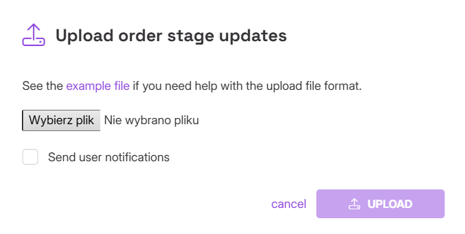 Once the file is ready, go to "Orders" and click "Upload stage changes". You'll see the following window: