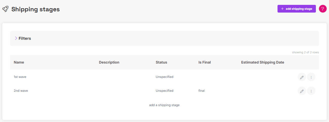 - For each stage, you can add a description and an estimated shipping date, which the backer sees while placing an order.